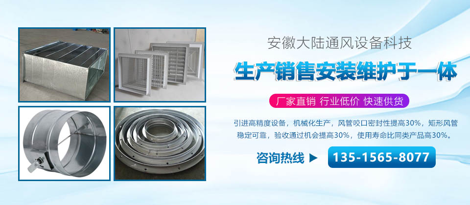 安徽大陸通風(fēng)設(shè)備科技有限責(zé)任公司加工共板法蘭風(fēng)管、螺旋風(fēng)管、角鐵法蘭風(fēng)管、插接式風(fēng)管。價(jià)格合理。質(zhì)量保障。是國(guó)內(nèi)生產(chǎn)和研究通風(fēng)管道的企業(yè),工廠(chǎng)坐落于經(jīng)濟(jì)發(fā)達(dá)的安徽省合肥市。公司配備了好的自動(dòng)化流水線(xiàn)設(shè)備和先進(jìn)的制作安裝技術(shù)。